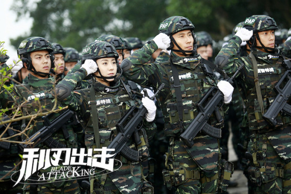 軍事題材在近年來頗受市場歡迎。電影《紅海行動(dòng)》憑借中國軍人自帶的“燃”屬性在春節(jié)檔電影中脫穎而出,“蛟龍出海,揚(yáng)我國威”。而接檔《紅海行動(dòng)》的《利刃出擊》更是將“燃”屬性進(jìn)行到底,“獵豹出擊,誰與爭鋒”。該劇主要講述了楊爍 飾演的武警某部突擊隊(duì)大隊(duì)長劉闖帶領(lǐng)“獵豹突擊隊(duì)”的武警特戰(zhàn)隊(duì)員們與國際犯罪集團(tuán)間展開殊死較量的故事。“獵豹突擊隊(duì)”的名字不僅體現(xiàn)了武警特戰(zhàn)隊(duì)員們對(duì)待犯罪分子擁有獵豹一樣的警覺以及敏銳力,還表達(dá)了獵豹突擊隊(duì)的隊(duì)員們將罪犯以獵豹般的速度繩之以法的決心。