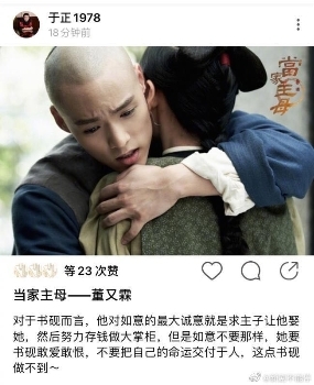 新劇《當(dāng)家主母》火熱開拍中,于正發(fā)文贊董又霖演技