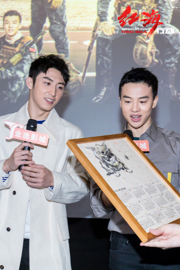 “蛟龍突擊隊”狙擊小隊黃景瑜 、尹昉亮相蘇州,他倆現(xiàn)場大呼拍攝中的實彈射擊超爽,根本打不夠。在被問到拍攝前后的感受和變化時,尹昉表示自己的角色有難度,將拍攝壓力轉(zhuǎn)入了人物塑造中,也坦言自己跟著角色一起在成長。而有點小傲嬌但戰(zhàn)場上沉著霸氣的狙擊手黃景瑜則說:“我全程都很自信。”倆人現(xiàn)場還開啟了互捧模式,尹昉說:“我覺得景瑜演得很好,一方面他要表現(xiàn)出放松、瀟灑,但實際上又很有難度、很緊張。”聽到夸獎黃景瑜馬上回應(yīng):“拍完第一場戲,我就受到了尹老藝術(shù)家的大力夸獎。我能演這么好你有很大作用!”倆人現(xiàn)場詮釋了“我的軍功章有你的一半”?,F(xiàn)場觀眾熱情似火,他們還收到女影迷送來的黃橋革命老區(qū)的特產(chǎn)漲燒餅,寓意《紅海行動》票房越炸越漲!