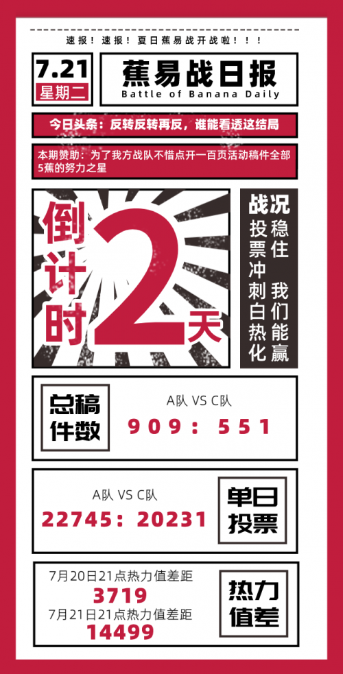 與此前以“蕉友”為目的的“夏日蕉蕉同好會(huì)”活動(dòng)不同,本次活動(dòng)首次采用了ABAB雙月超強(qiáng)續(xù)航模式,先后設(shè)置了隊(duì)長(zhǎng)“領(lǐng)軍“全民投稿、雙陣營(yíng)混戰(zhàn)Battle以及“兩軍對(duì)壘”等新穎活動(dòng)形式。
